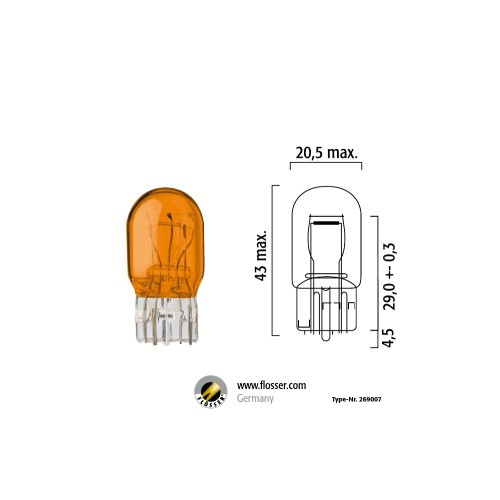 Flösser W21/5W W3х16q 12V 21/5W T20 цвет янтарный