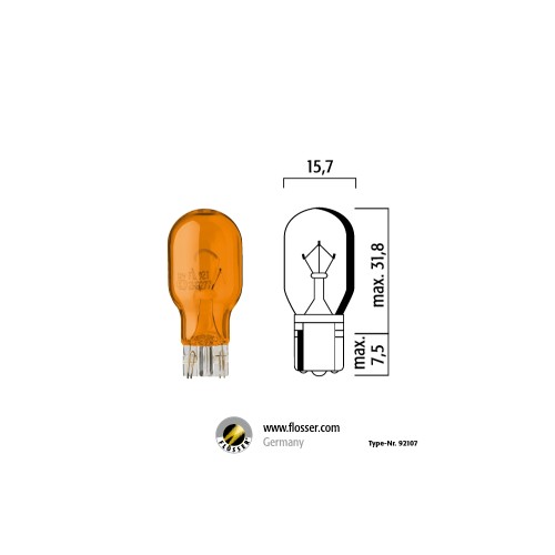 Flösser W16W W2,1х9,5d 12V 16W T15 цвет янтарный