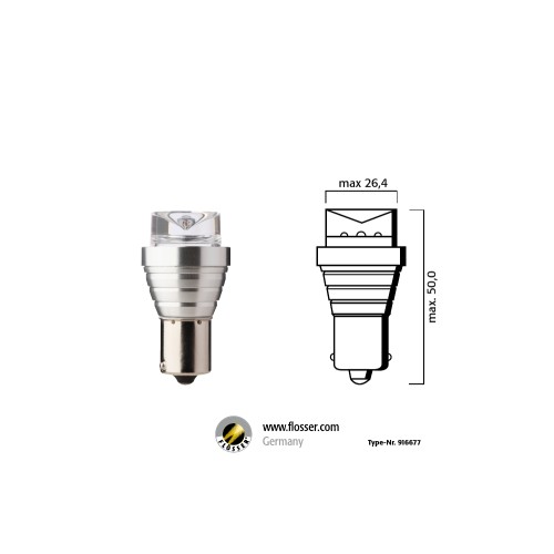 Flösser P21W BA15s 12V 21W LED 6500K цвет янтарный